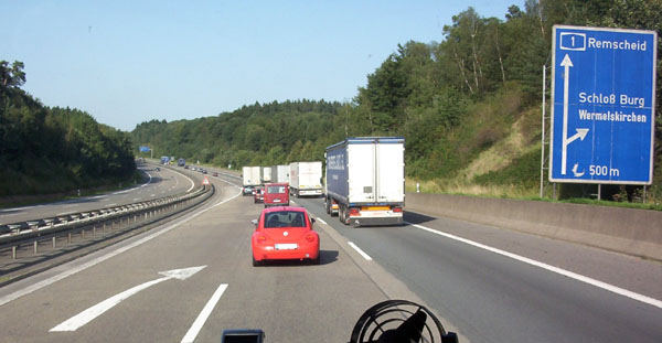Kurz vor Remscheid hat die Autobahn - zumindest in Richtung Dortmund - drei Fahrspuren