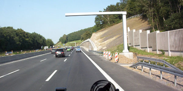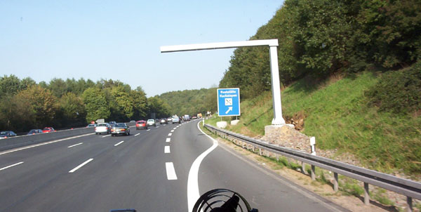 Ausfahrt zur Raststätte. Die neuen Tafeln wurden inzwischen montiert.
