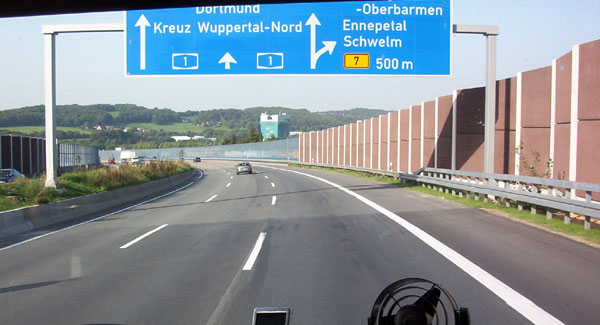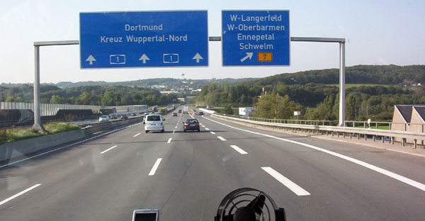Entfernungstafel hinter dem Kreuz Wuppertal-Nord