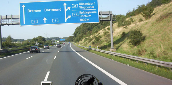 Die Fahrbahn der A 43 schert am Kreuz Wuppertal-Nord aus weiter auf der A 43 nach Recklinghausen