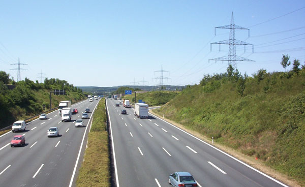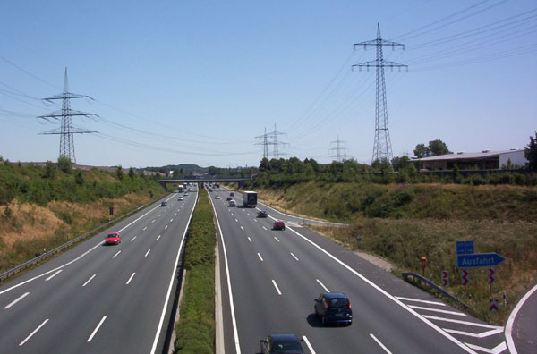 Blick auf die Fahrbahn in Richtung Bremen/Münster, von knisternden Hochspannungsleitungen umzingelt zurück zur Übersicht |