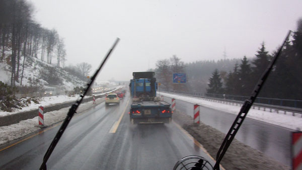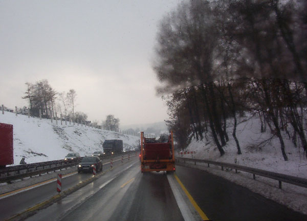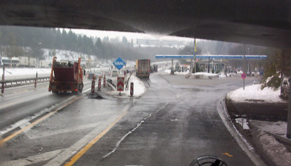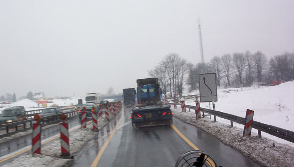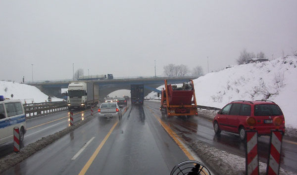 ...aber der Verkehr wurde über einen provisorisch hergerichteten Anschluss geführt. Leider ist das entsprechende Schild ist durch den vorausfahrenden LKW verdeckt.