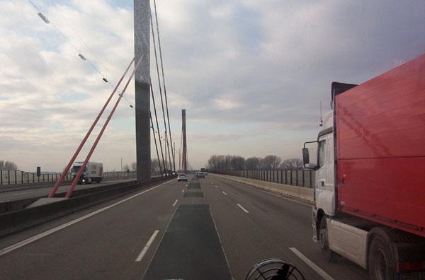 Auf der ebenfalls seitenstreifenlosen Rheinbrücke