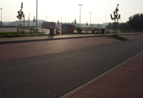 © Patrick Scholl, 27.09.2008 Richtung Lübeck: Die geplante Raststätte Schönberger Land zwischen Lüdersdorf (3) und Schönberg (4) ist zur Zeit nur als Parkplatz mit WC nutzbar. Die komfortable WC-Anlage sieht man in der Bildmitte! Auf dieser freigehaltenen Fläche soll einmal Tankstelle und Rasthaus entstehen. Richtung Rostock: Hier gibt es ebenfalls nur Toilettenkabinen zurück zur Übersicht |