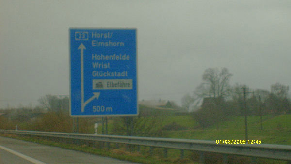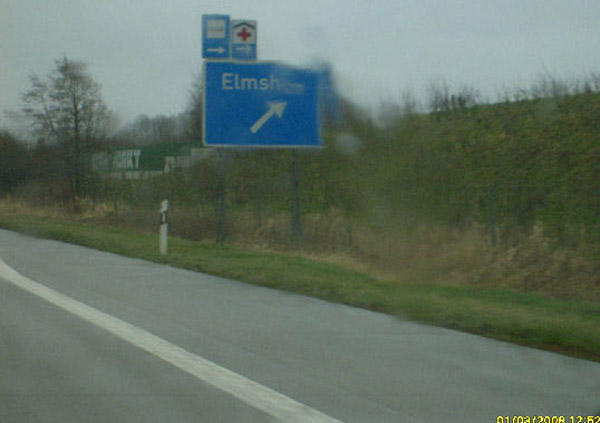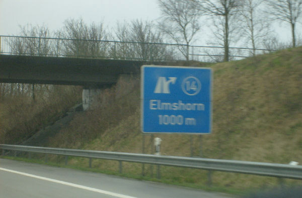 Ausfahrt 14 Elmshorn mit demoliertem Wegweiser ;-)