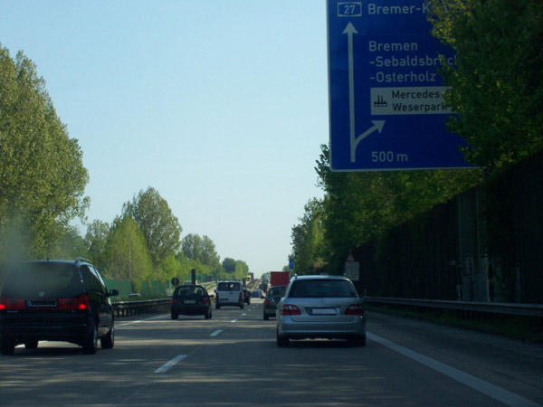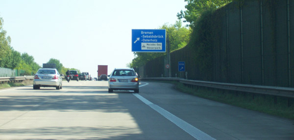 Vorwegweiser der AS Bremen-Sebaldsbrück. Seit neuestem ist hier der Hinweis 'DaimlerChrysler' durch 'Mercedes-Benz' ersetzt.