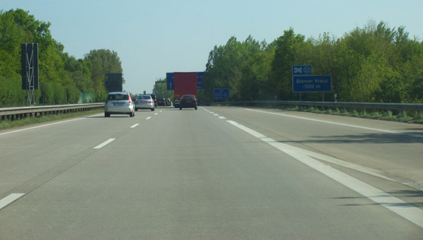 Bereits im Zufahrtsbereich der AS -Sebaldsbrück wird das Bremer Kreuz angekündigt
