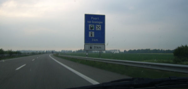 Ankündigung der niederländischen Raststätte "Poort van Groningen" bei Bunde