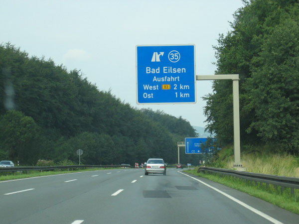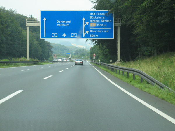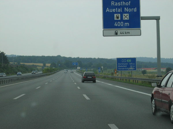 Ausfahrt zur Raststätte "Auetal". Wie weit ist es noch bis Osnabrück?