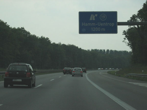 Ankündigung der AS 19 "Hamm-Uentrop". Die Fahrbahn ist hier schon für den sechsstreifigen Ausbau vorbereitet.