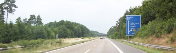 Kurz vor dem Parkplatz Lüningskamp, über den gleichzeitig die Nebenanschlussstelle Dorsten-Holsterhausen angebunden ist.