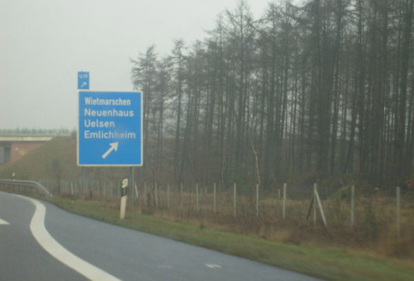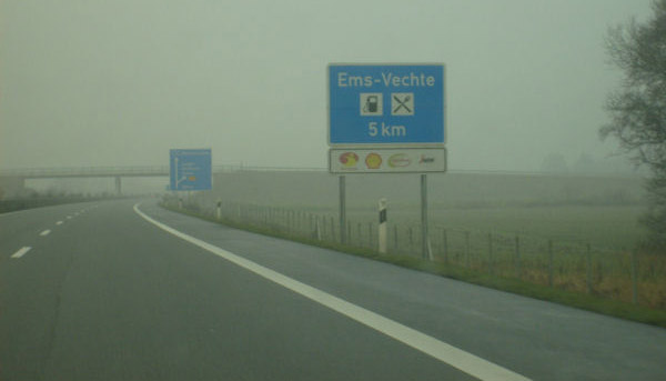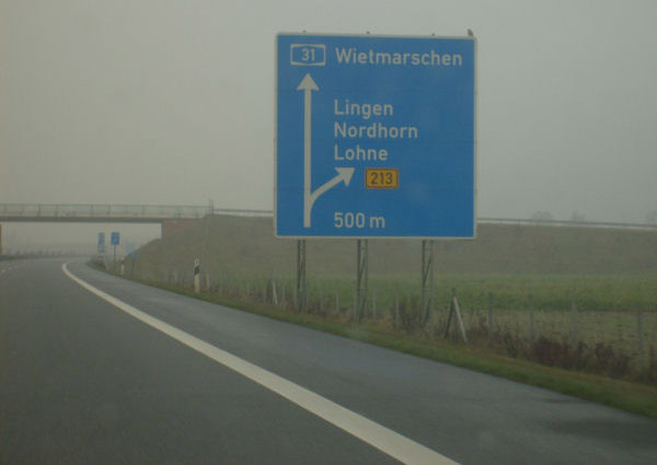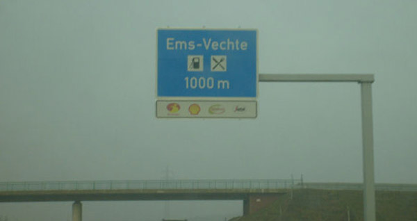 Fahrtrichtung Nord © Marcel van der Broek, 24.12.2007 Kreuz Schüttorf im Nebel AS 26: Emsbüren Hinweistafel "Emsland" Und gleich die nächste braune Tafel für die "Grafschaft Bentheim" Ankündigung der AS 25 Lingen Die einzige Rastanlage (Ems-Vechte) naht AS 25 Lingen Entfernungstafel hinter Lingen Raststätte Ems-Vechte in 1 km Tankstelle Ems-Vechte-Ost AS 24 Wietmarschen Entfernungstafel hinter Wietmarschen Hinweis auf den "Internationalen Naturpark Bourtanger Moor-Bargerveen" weiter zu Teil 2 zurück zur Übersicht |