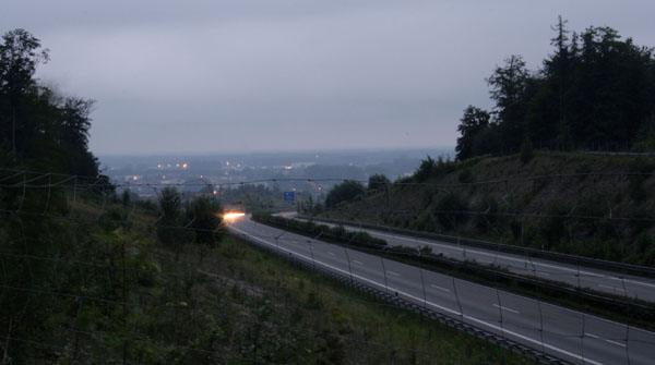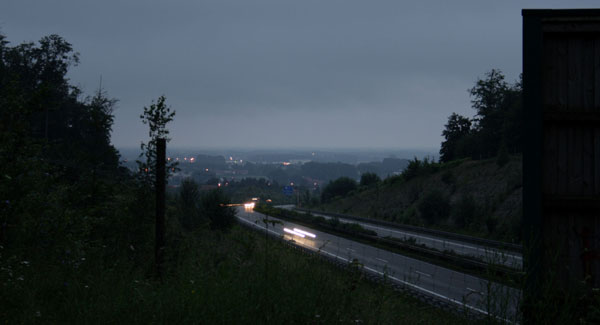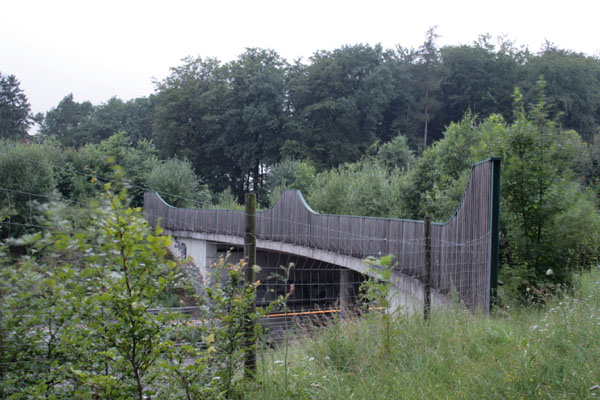 © Quasitim, 04.07.2007 Abendstimmung rund um eine 20 Meter breite Grünbrücke, die zwischen den AS Hilter (12) und Dissen/Bad Rothenfelde (13) die A 33 überspannt. Grünbrücken (auch Wildbrücken genannt) werden angelegt um Tieren das gefahr- lose Überqueren der Fahrbahn zu ermöglichen. Damit die Tiere nicht trotzdem auf die Fahrbahn laufen können, wird die Straße in der Regel beidseitig eingezäunt.