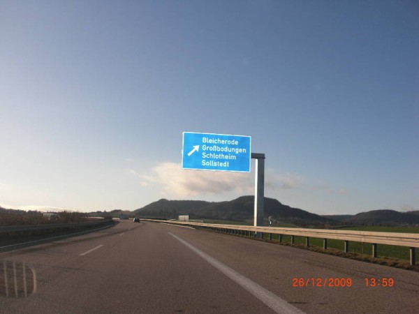 Bis hierher war bis zum 22.12.09 Schluss. Jetzt ist die BAB 38 endlich nach 14 Jahren Bauzeit durchgängig vom Dreieck Drammetal bis zum Dreieck Parthenaue befahrbar. Der uneigentliche erste Bauabschnitt war zwischen Friedland (Han.) und Dreieck Drammetal als B 524 gebaut und beschildert worden. Der erste offizielle Abschnitt war die Südumfahrung von Sangerhausen.