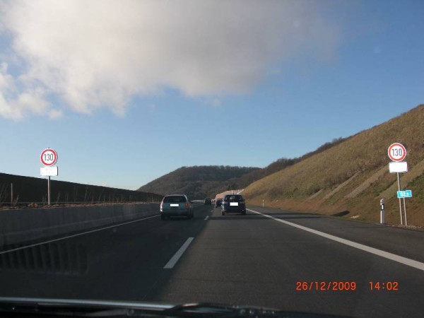 Geschwindigkeitsbegrenzungsschilder auf 130 Km/h wegen der neuen Fahrbahn weiter zu Teil 2 zurück zur Übersicht |