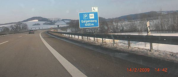 Ankündigung des Parkplatzes Galgenberg