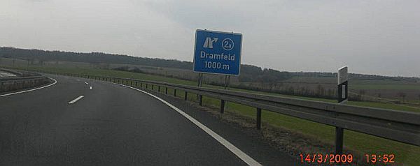 Noch auf der Rampe wird auf die Abfahrt Dramfeld hingewiesen