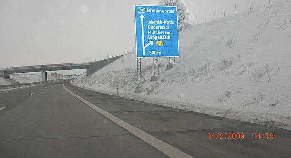 Ankündigung der AS Breitenworbis (7) vom Parkplatz Eichsfeld aus gesehen