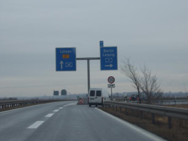 Kurz vor dem Kreuz. Die A 38 endet nicht mehr in Lützen. Sie ist inzwischen bis Leipzig-Süd befahrbar.