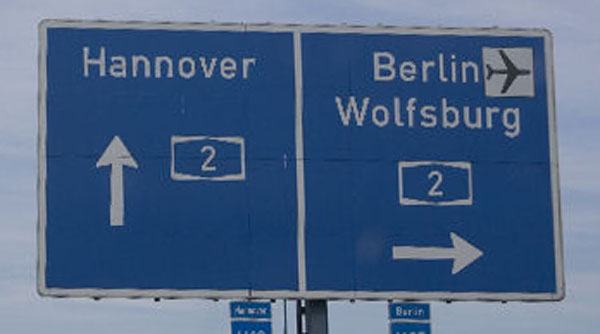 Unförmiger Bedarfsumleitungswegweiser weiter auf der A 2 nach Hannover zurück zur Übersicht |
