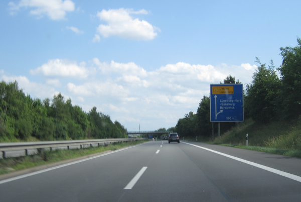 Fahrtrichtung Ost © Jens aus Buchholz, 30.06.2012 zurück zu Teil 1 Ausfahrt Handorf Auffahrt Handorf Hinweis auf den "Bardowicker Dom" Entfernungstafel Lärmschutz für Bardowick - Tempo über 200 km/h nicht selten Ankündigung Lüneburg-Nord (Tempo jetzt 120 km/h) Vorwegweiser Lüneburg-Nord Ausfahrt Lüneburg-Nord Übergang von der A39 auf die B4 (Ostumgehung Lüneburg) - Ende der Autobahn Weiter auf der B4 - geplanter Ausbau zur A39 (Richtung Wolfsburg) Begrüßung durch einen Blitzkasten (100 km/h) hinter dem Hinweisschild auf die Lüneburger Altstadt. Brücke über die Ilmenau Hinweis Ausfahrt LG-Lüne/Adendorf Vor der Ausfahrt LG-Lüne/Adendorf - B209 Richtung Norden (Lauenburg) zurück zur Übersicht |
