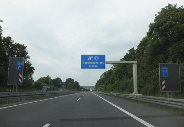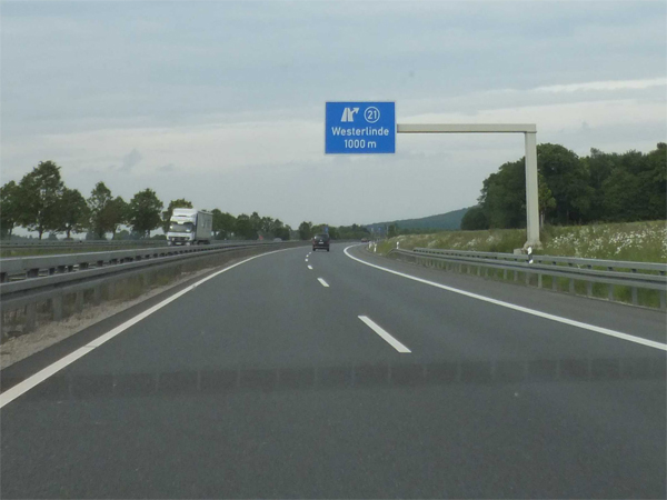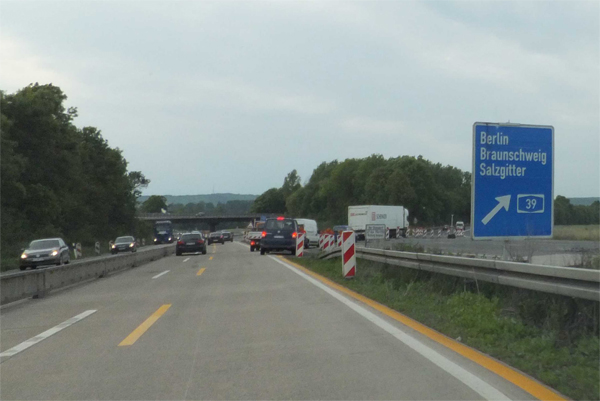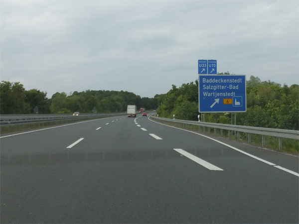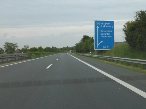 Fahrtrichtung Nord © Joachim Paul, 12.06.2013 Vorwegweiser Dreieck Salzgitter auf der A 7 Richtung Norden Verkürzte Ausfahrt in Richtung A 39 Ende der Baustelle Entfernungstafel hinter dem Dreieck Salzgitter Ankündigungstafel AS Baddeckenstedt Vorwegweiser AS Baddeckenstedt Ausfahrt Baddeckenstedt Tempolimit 120, gilt für den überwiegenden Teil der A 39 bis Braunschweig Entfernungstafel hinter Baddeckenstedt Ankündigungstafel AS Westerlinde Vorwegweiser AS Westerlinde AS Westerlinde Brücke der L 474 Entfernungstafel hinter Westerlinde Touristische Unterrichtungstafel "Erholungslandschaft Salzgittersee" Ankündigungstafel AS Lichtenberg weiter zu Teil 2 zurück zur Übersicht |