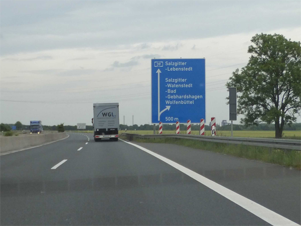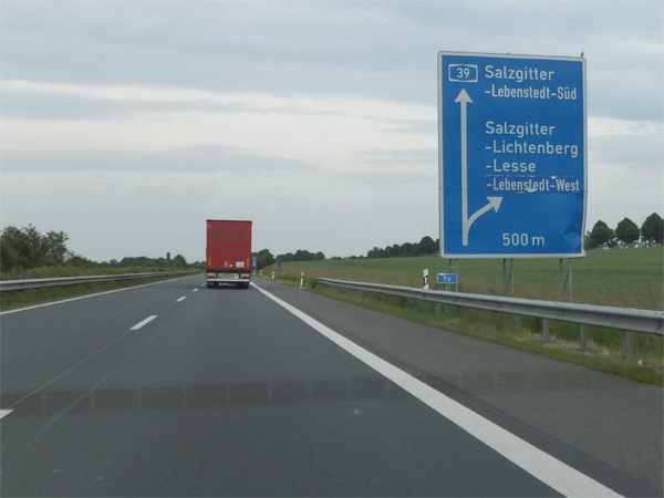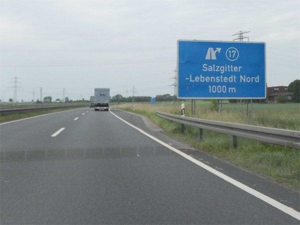 Fahrtrichtung Nord © Joachim Paul, 12.06.2013 zurück zu Teil 1 Vorwegweiser AS Lichtenberg AS Lichtenberg Ende Tempolimit 120 Touristische Unterrichtungstafel "Renaissanceschloss Salder" Entfernungstafel bei Kilometer 11,5 Ankündigungstafel AS Lebenstedt-Süd Vorwegweiser AS Lebenstedt-Süd AS Lebenstedt-Süd Entfernungstafel hinter Lebenstedt-Süd Ankündigungstafel AS Watenstedt Vorwegweiser AS Watenstedt AS Watenstedt Wieder Tempolimit 120 Entfernungstafel hinter Watenstedt Ankündigungstafel AS Lebenstedt-Nord Vorwegweiser AS Lebenstedt-Nord AS Lebenstedt-Nord Richtung VW-Werk Ankündigung Baustelle in 2 km AS Lebenstedt-Nord Richtung Lebenstedt weiter zu Teil 3 zurück zur Übersicht |