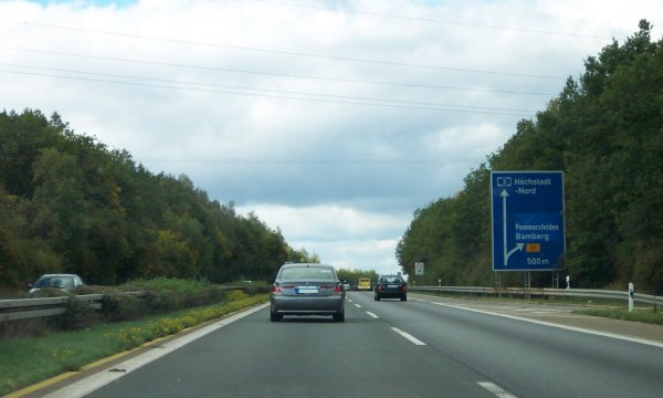 Vorwegweiser der AS Höchstadt-Ost, über die auch Forchheim mit seiner historischen Altstadt zu erreichen ist.
