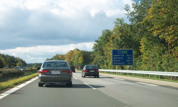 Die Raststätte Steigerwald versteckt sich hinter den Bäumen am Fahrbahnrand.