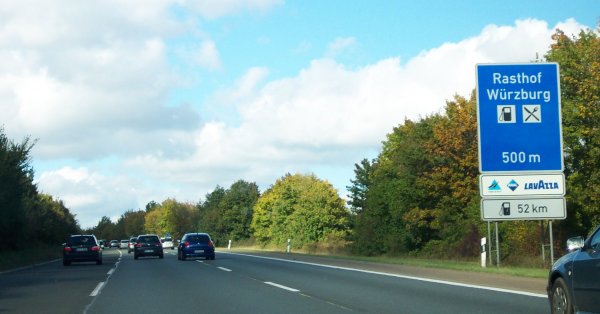 Ankündigung der Raststätte Würzburg...