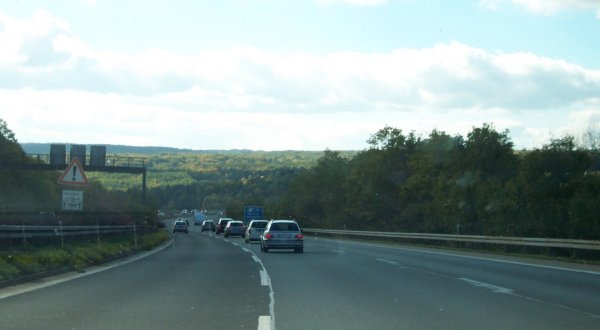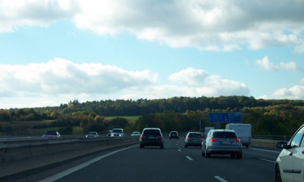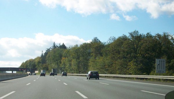 Ab hier ist die Autobahn wieder ausgebaut, für die nächsten zwei Kilometer sogar 4-spurig in Richtung Frankfurt. Weiter vorn befindet sich die nächste Entfernungstabelle.