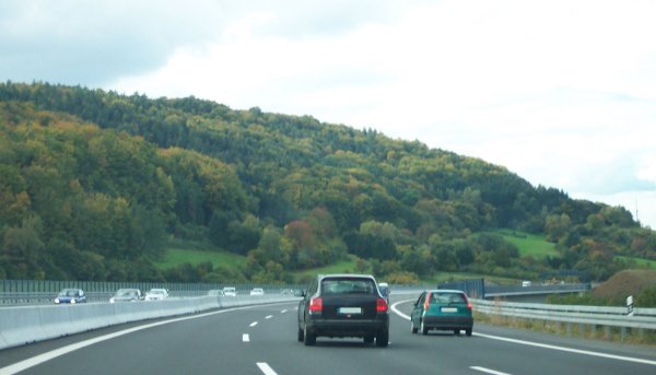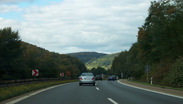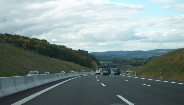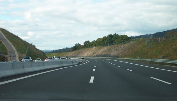 Geländebedingte Fahrbahntrennung und Gefällstrecke...
