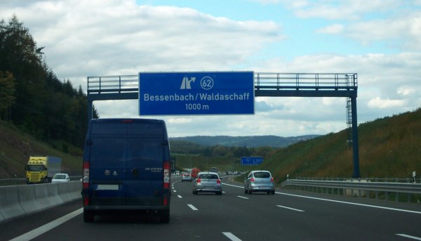 Ankündigung der AS Bessenbach/Waldaschaff. Ungefähr hier geht die neue Trasse wieder auf die alte über.