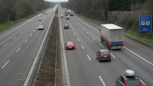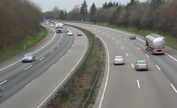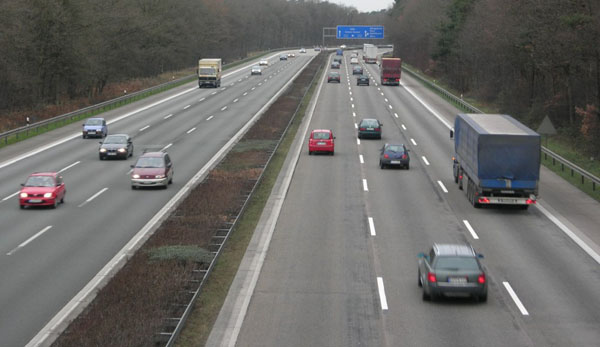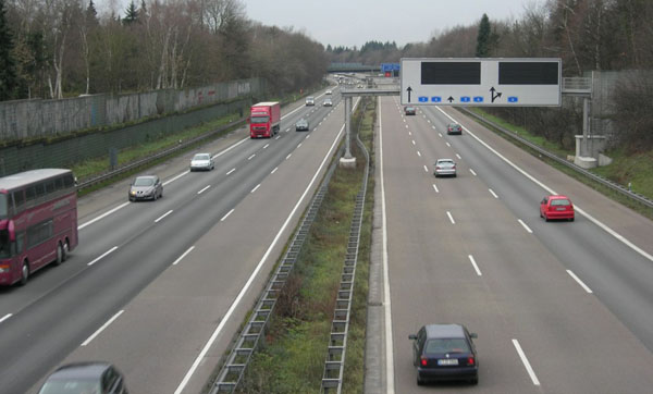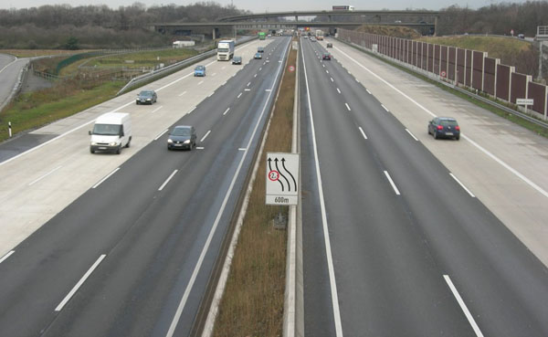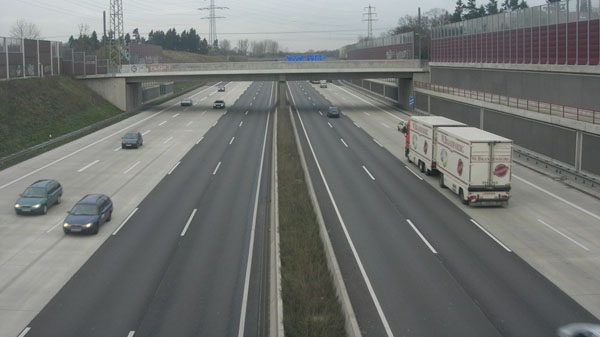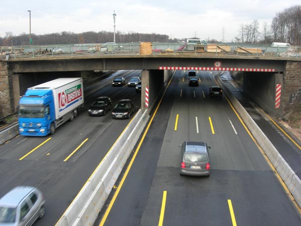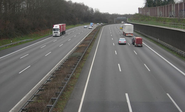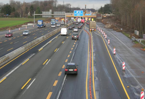 Blick von der B 55 auf den achtstreifigen Abschnitt der A 3.