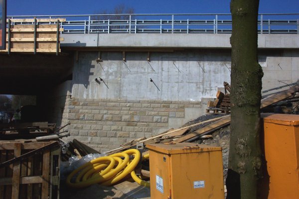 01.04.2009 Auch unter der Brücke wurden bereits Klinker angebracht