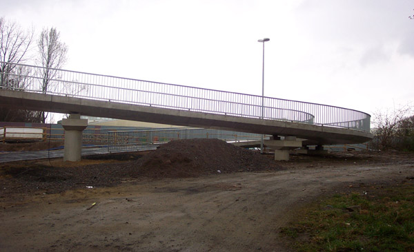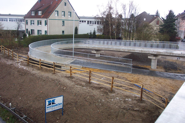 26.02.2009 Die bereits 2008 neu eröffnete Fußgängerbrücke Im Steinhof (Blick nach Süden)