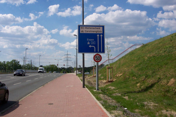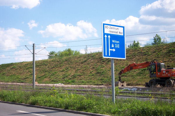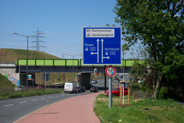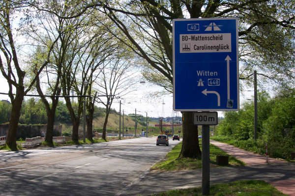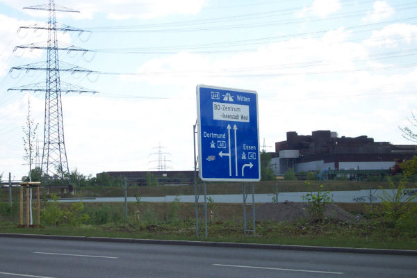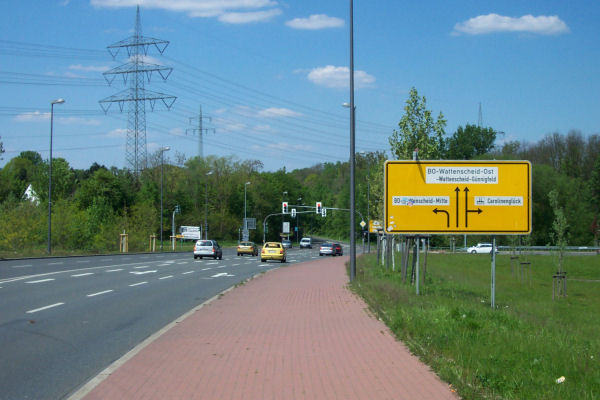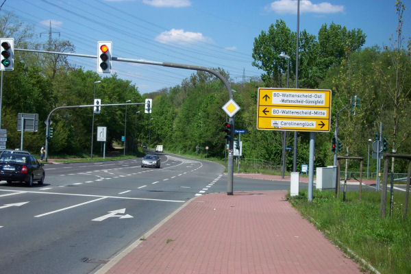 Vorwegweiser der neuen Kreuzung Wattenscheider Straße, Darpestraße