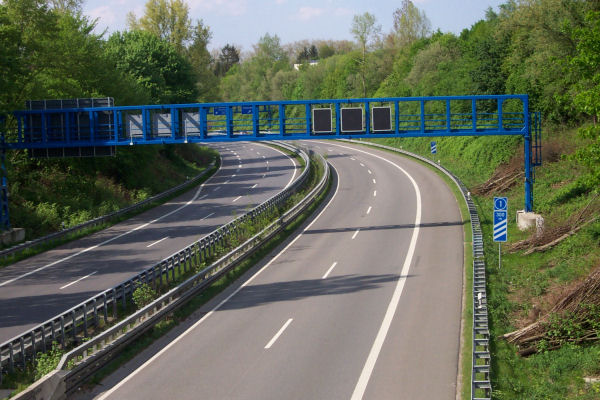 Die Hauptfahrbahn verlässt den ursprünglichen Straßenverlauf