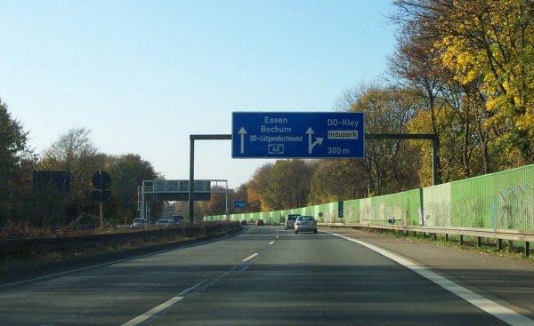 Wenige hundert Meter hinter der AS Dortmund-Lütgendortmund wird die AS Bochum-Werne (39) zusammen mit dem Kreuz Bochum (38) angekündigt.