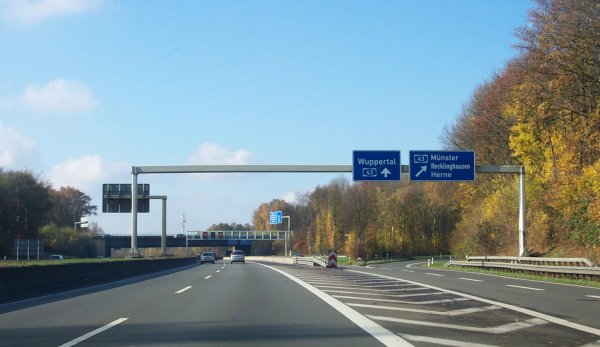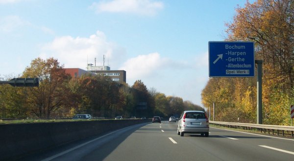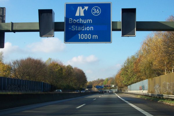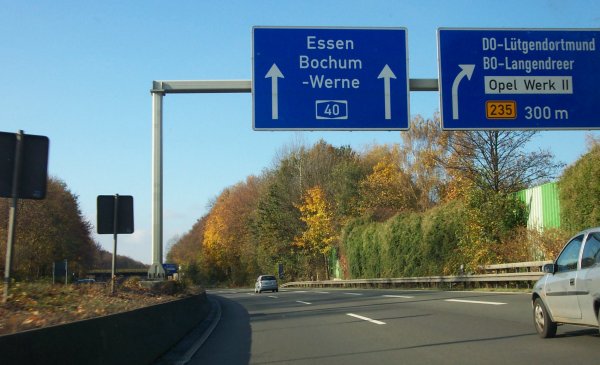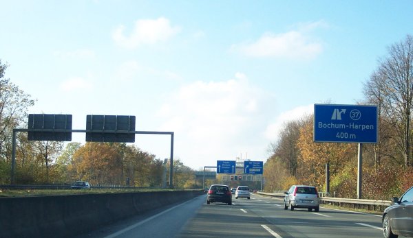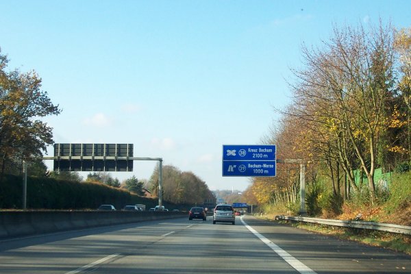 Vorwegweiser des Kreuzes Bochum noch in der Zufahrt der AS Bochum-Werne