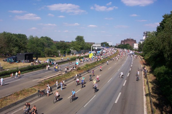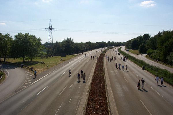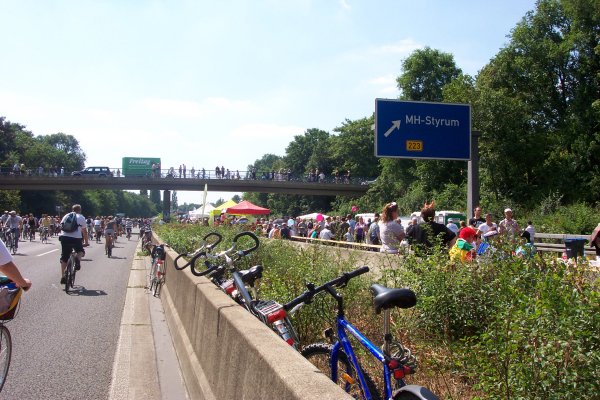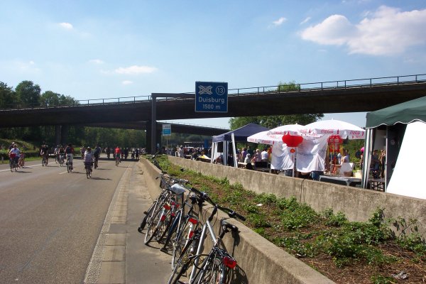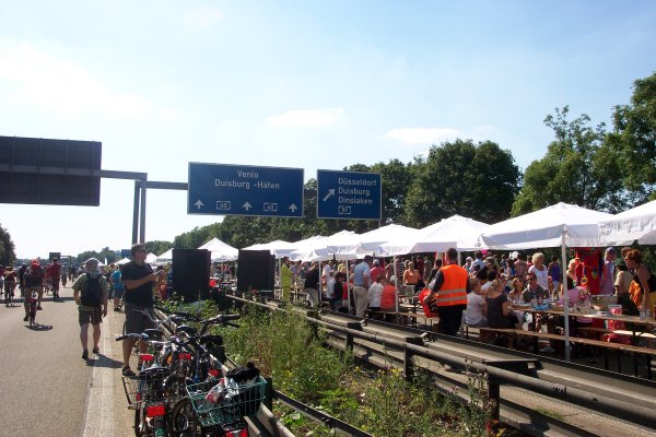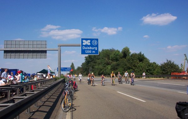 Aufbruchstimmung kurz vor Ende des Still-Lebens, etwa 600 m hinter dem Kreuz Duisburg