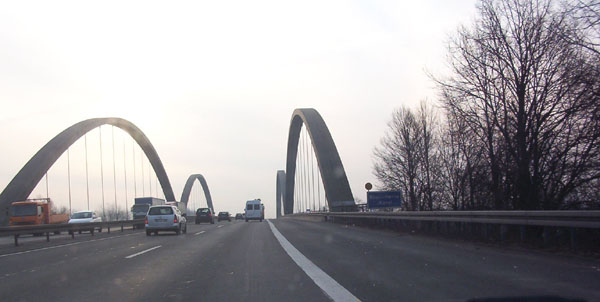 Der Doppelbogen der Rhein-Herne-Kanal-Brücke macht diese besonders markant