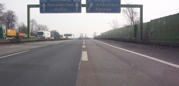 Im Kreuz Essen-Nord. Die hier kreuzende B 224 geht in Gladbeck in die A 52 Richtung Haltern über. Der dringend erforderliche Umbau der B 224 verzögert sich immer weiter...