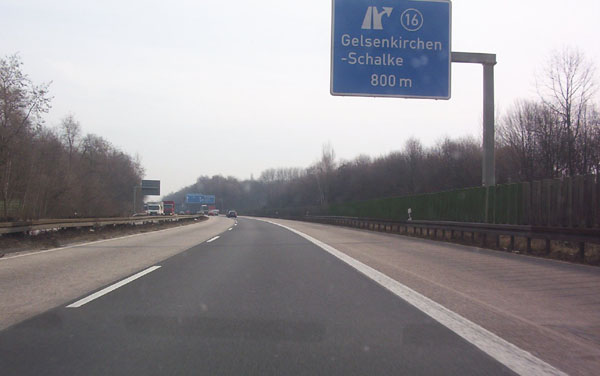 Die hier angekündigte AS 16 Gelsenkirchen-Schalke wurde inzwischen in Gelsenkirchen- Zentrum umbenannt. Grund ist die neue AS 17, die ebenfalls Gelsenkirchen-Schalke heißt.