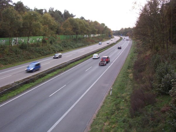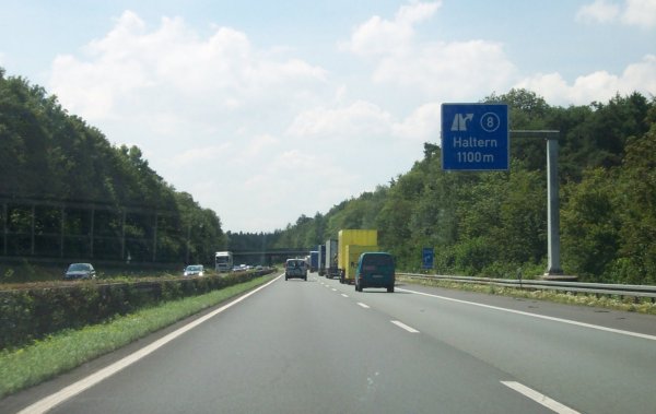 Vor dem Vorwegweiser der AS Haltern (8) von der Brücke "Alter Weseler Weg" aus gesehen