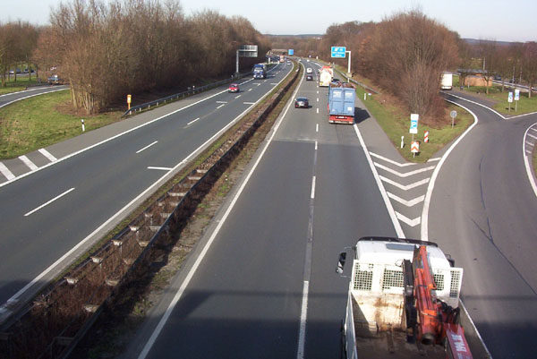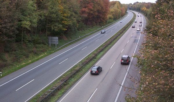 Blick von der Brücke des Westerholter Weges auf die Autobahn