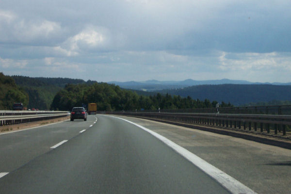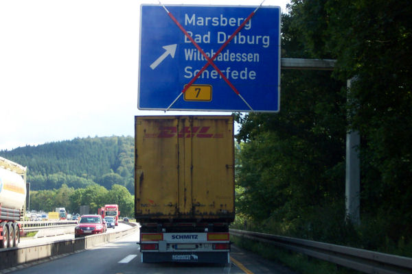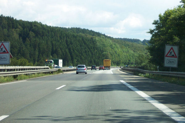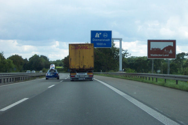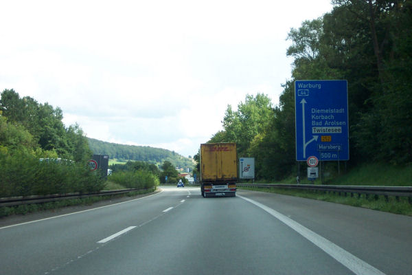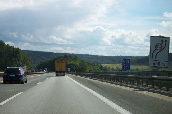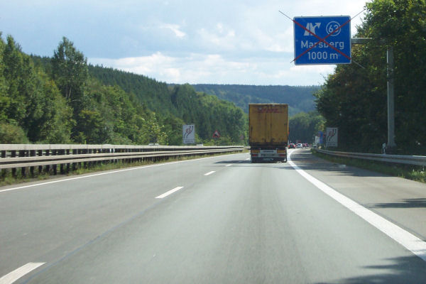 Gleich hinter der Talbrücke befindet sich der Vorwegweiser der gesperrten AS Marsberg.
