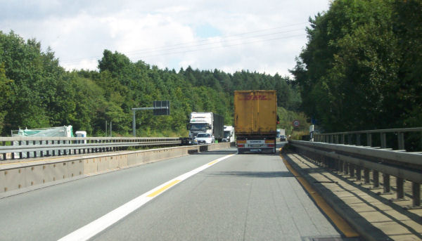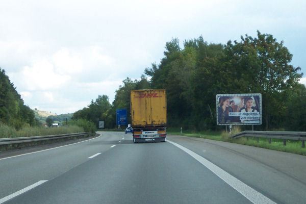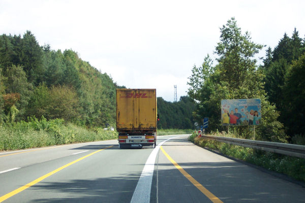 Auf Höhe der Raststätte "Am Biggenkopf" überholt ein Werbefahrzeug