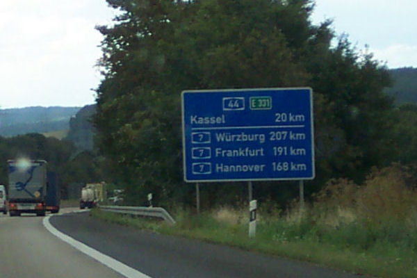 ...auf der als Entfernung nach Kassel jetzt 20 km angegeben sind!