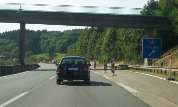 VBA, Ankündigung einer Baustelle und im Hintergrund der AS Hagen-Süd